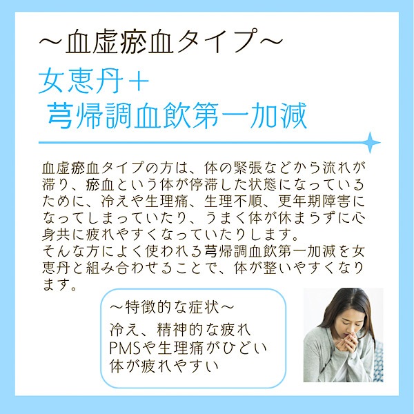 こちらは女恵丹の効能効果に添ったお悩みがある方で
