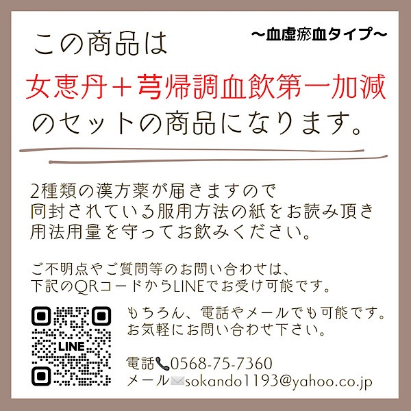 【血行不良タイプ(血虚於血タイプ)/お試し14日分】女恵丹+きゅう帰調血飲第一加減セット(第2類医薬品)