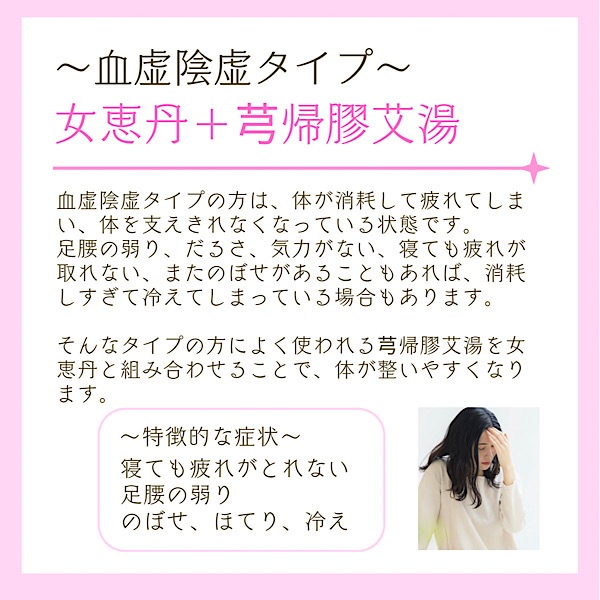 こちらは女恵丹の効能効果に添ったお悩みがある方で